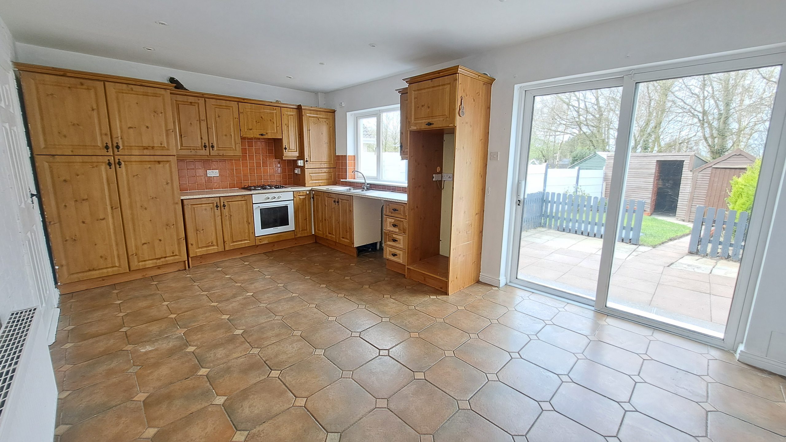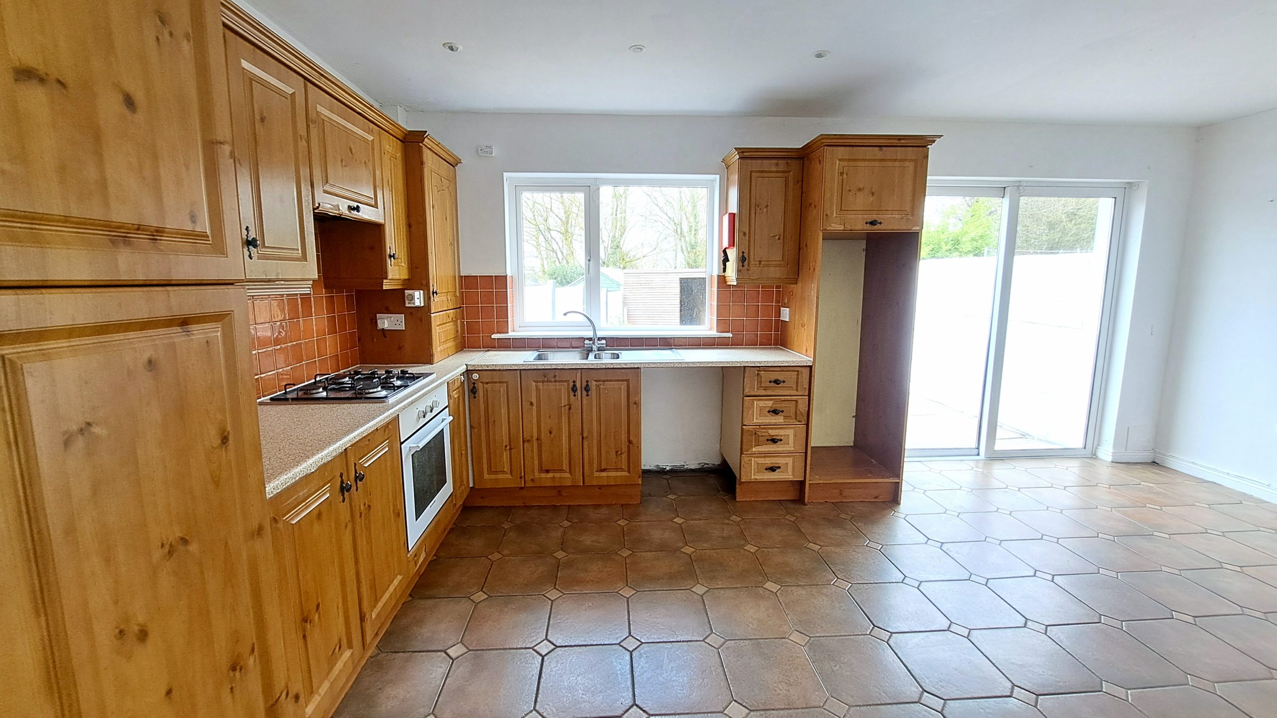 Kitchen / Diningroom: 5.6 m x 3.5 m, split level kitchen units, built-in oven, hob and extractor fan, tiled floor, plumbed and wired, gas boiler, heating controls, recessed lighting, carbon monoxide alarm, radiator, patio door to patio area and garden.