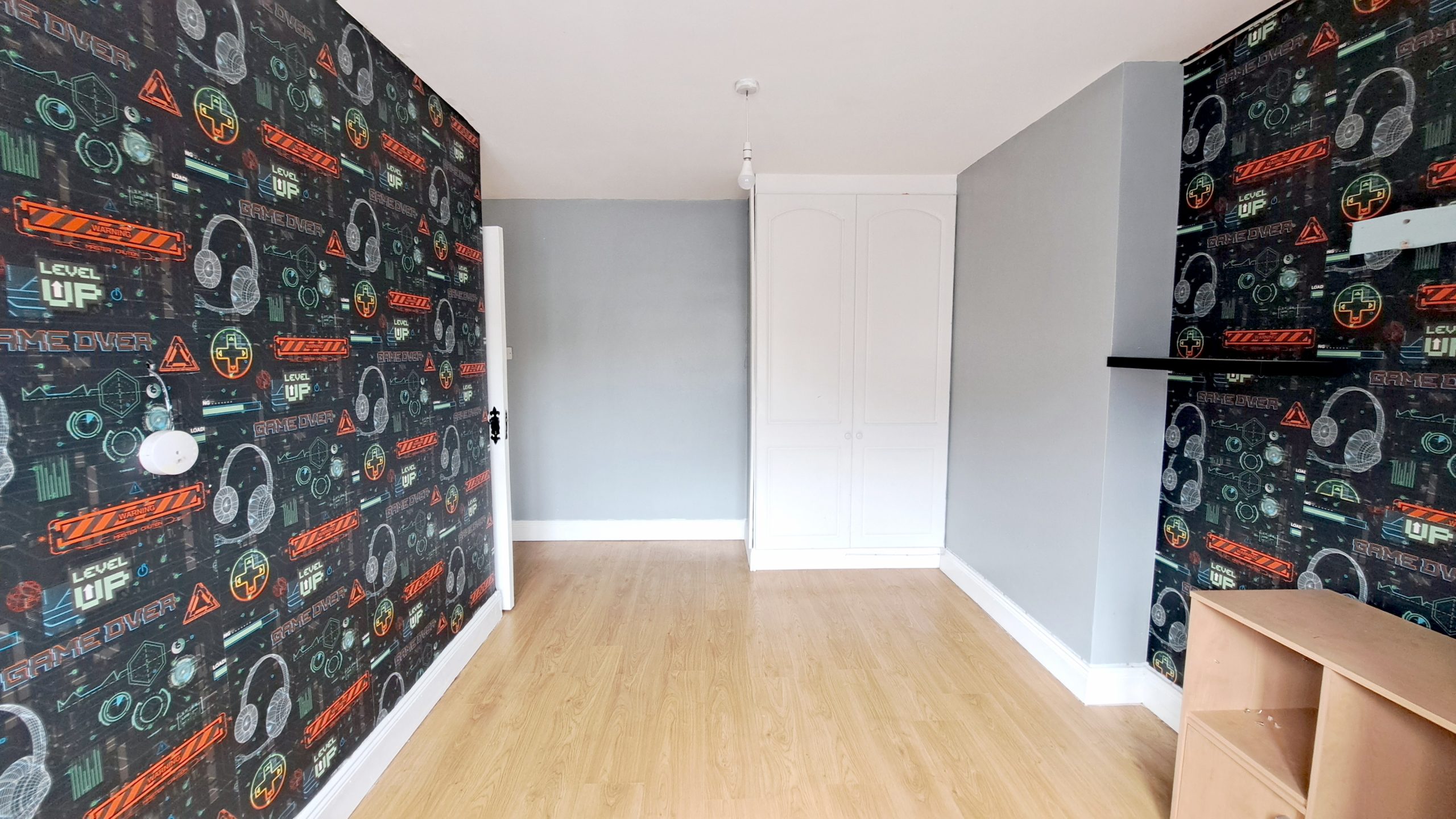 Bedroom 3: 2.3 m x 2.7 m, built-in wardrobe, laminated flooring, vent, radiator, T.V. & power points.
